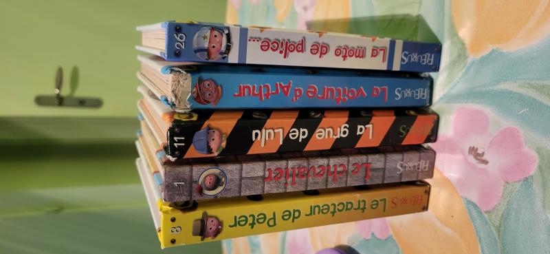 fleurus, la grue de lulu, le tracteur de peter, la moto de yannis, le chevalier arthur / 30€ le lot ou 8€ à l'unité (ph)