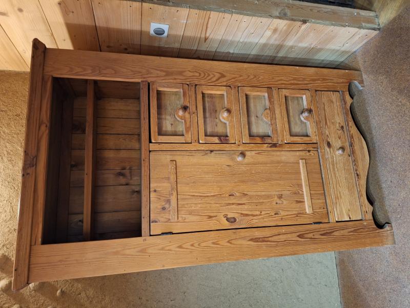 en chêne, avec rangements, idéal pour cuisine d'été ou en sous sol.